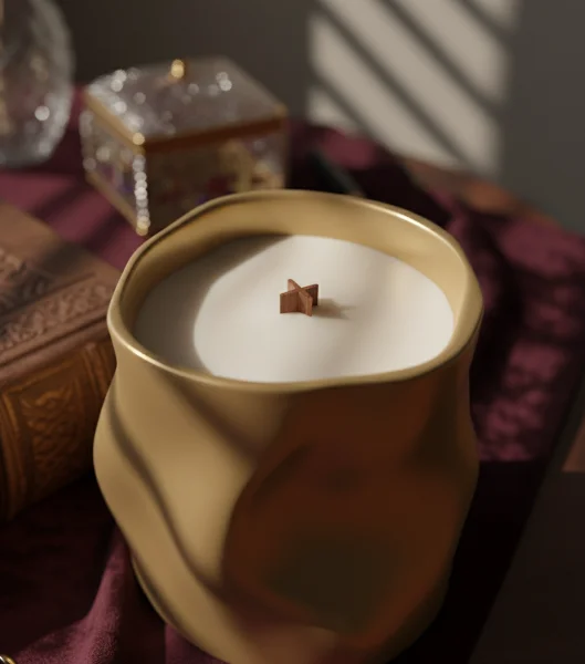 Skulpturales Design: Die einzigartige Textur und die organischen Formen des Gefäßes machen diese Kerze zum perfekten Akzent für jedes moderne Interieur.
